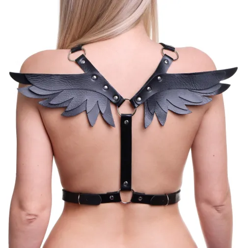 Портупея БДСМ Оки-Чпоки, с крыльями, на грудь, экокожа, размер OS, черный
