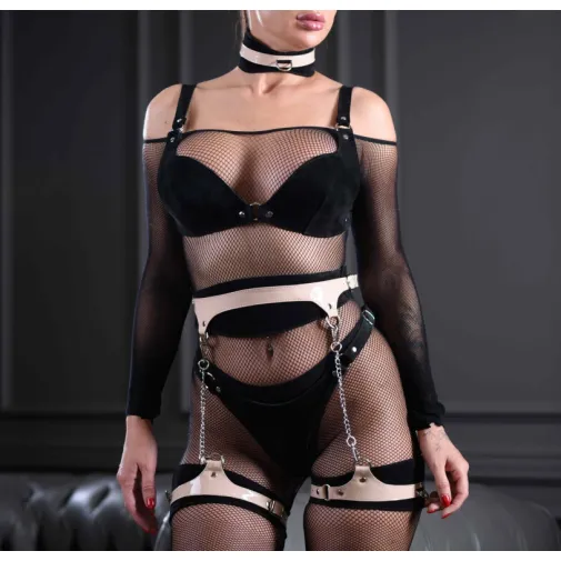 ПОЯС С ГАРТЕРАМИ SEX GAME ЧЕРНО-БЕЖЕВЫЙ ЗАМШЕВЫЙ [5012]
