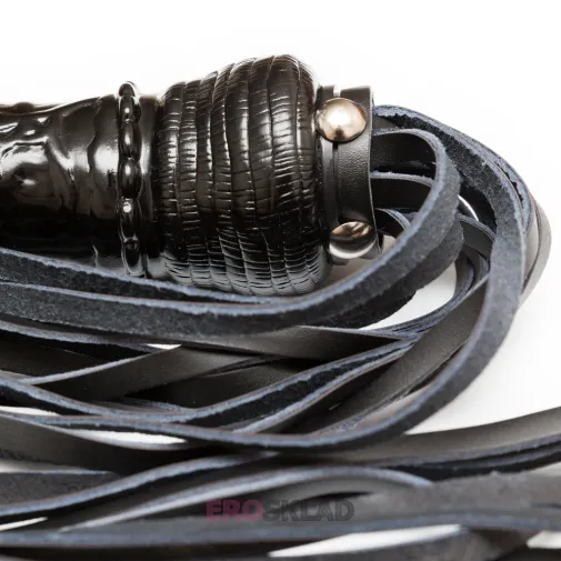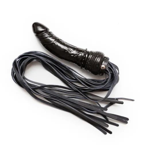 Интересный аксессуар от полюбившегося многим бренда БДСМ-аксессуаров - плеть с множеством хвостов, закрепленных на рукояти в виде фаллоса.