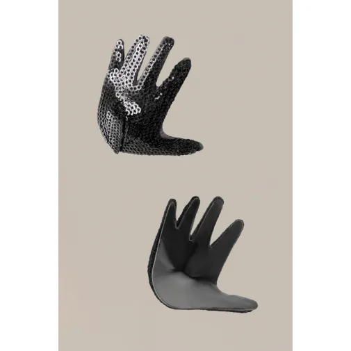 Наклейки на соски многоразовые. Однотонные. Конус выполнен из полиуретана, внутри — слой силиконового геля. Декор: пайетки.