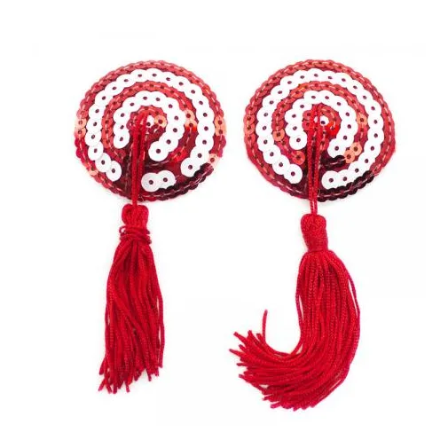 Невероятно сексуальный аксессуар для раскованных и уверенных в себе женщин - блестящие красно-белые пэстисы в форме круга, украшенные пайетками. Эта яркая деталь эротического образа, приятно удивит Вашего любимого мужчину.