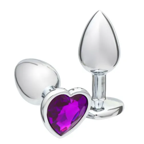 Анальная пробка Оки-Чпоки, серебряная, кристалл фиолетовый, в форме сердца, D = 28 мм