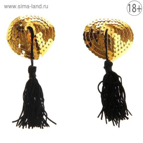 Накладки на грудь "Сердечко с кисточкой" золото ( набор 2 шт)