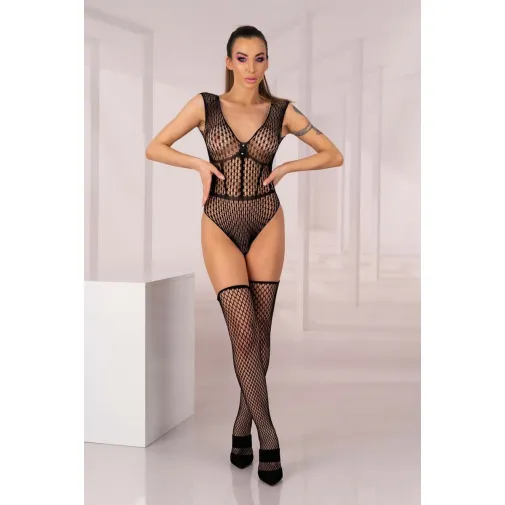 Пикантное боди Desdemona с чулками. Боди с V-образным вырезом дополнено пикантными сетчатыми чулочками. В комплекте: боди, чулки.