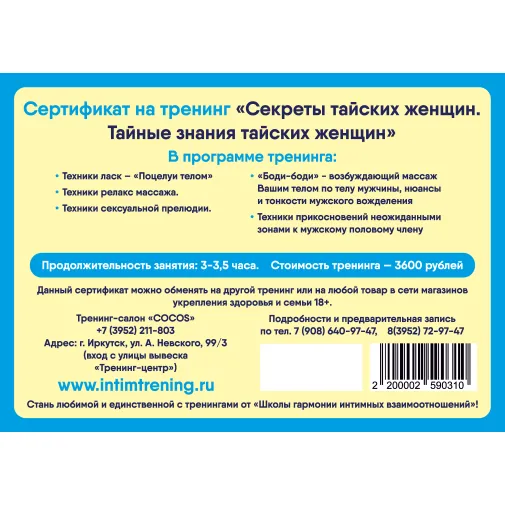 Подарочный сертификат на тренинг "Секреты тайских женщин" 4500 рублей