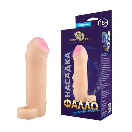 Насадка-удлинитель имеет реалистичный рельеф и коническую форму головки. Головка обладает четко очерченным краем, обеспечивающим высокую чувствительность при проникновении и плавно переходит в текстурированный ствол. с выраженным рельефом. В верхней части ствола находятся три крупных выступа для стимуляции входа в вагину и области точки G, а поверхность покрыта выступами, имитирующими вены и жилки. В одетом положении игрушка увеличивает член как в длину, так и в ширину. В основании расположена эластичная петля для мошонки. Материал – киберкожа. Размеры аксессуара 16 х 5,2 см., длина рабочей зоны 13,5 см.