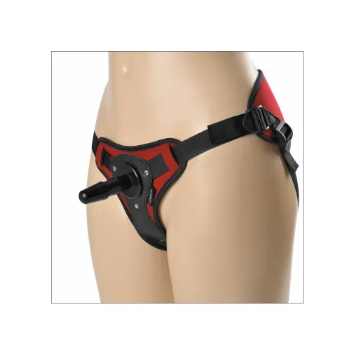Оригинальный и необычный девайс HARNESS Dual Peak, станет источником ярких незабываемых сексуальных ощущений, как для однополых пар, так и традиционных, благодаря своеобразному расположению коннекторов для насадок, одна из которых направлена внутрь, другая – наружу. Уникальность изделия состоит в том, что коннекторы легко откручиваются, это позволяет использовать, при желании, одну или две насадки. Длина коннектора около 8 см, ø 20 мм. Коннекторы имеют конусно-ступенчатую форму, поэтому прекрасно удержат любую насадку. Поясничный ремень и передняя часть, на которую крепятся втулки, изготовлена из неопрена. Это пористый мягкий материал, имеющий толщину около 5 мм и покрытый с обоих сторон эластичным гладким нейлоном красного цвета. Втулки и ремни для фиксации крепятся, непосредственно к вставке из натуральной кожи. Небольшие пластиковые пряжки помогут с лёгкостью отрегулировать и зафиксировать изделие на теле. Размер от XS до M.