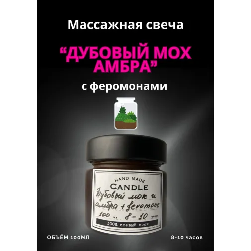 Массажная свеча «Дубовый мох и амбра» 100мл (ручная работа)