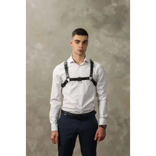 Стильная и необычная мужская портупея, полностью выполненная из натуральной кожи. Декорирована качественной металлической фурнитурой. Аксессуар двусторонний: его можно носить по разному, меняя положение по Вашему желанию. Стильный элемент для Вашего образа, который будет особенно эффектно смотреться на обнаженном мужском теле и возбуждать фантазию!