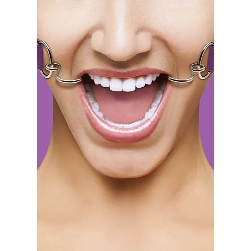 Расширяющий кляп в форме двух крюков с резиновыми наконечниками для безопасного использования. Крепится к голове при помощи кожаных ремешков (ширина - 2,5 см). Имеет 5 отверстий для регулировки длины. Упаковка: картонная коробка с принтом.