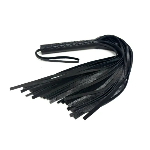 Эта плеть - уникальная модель, выполненная из цельного куска нежной зернистой натуральной кожи высокого качества в классическом черном цвете. Плеть очень пышная и богатая, в ней 50 хвостов! На рукоятке находится плетение, что придает особый шарм, Общая длина аксессуара 57см, мягкие хвосты длиной 40см. Благодаря своей цельной конструкции, данная плеть прослужит Вам долго, хвосты не оторвутся и сохранят свой благородный вид, аксессуар очень надежный и красивый. Для удобства на рукоятке имеется кожаная петелька.