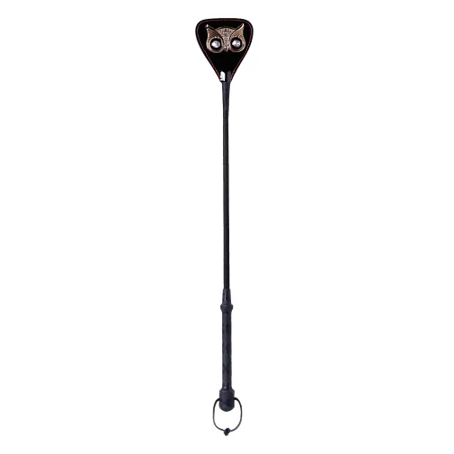 Стек 55 см со шлепком из лакированной кожи и украшением в виде головы совы выглядит очень стильно. Но очаровывающий внешний вид этого приспособления не должен вводить в заблуждение — аксессуар предназначен для умеренных и сильных воздействий. Конечно, им можно и нежно поглаживать партнёра. Или использовать для антуража в ролевых играх. Этот стек справится с любой задачей и выведет на новый эмоциональный уровень!
