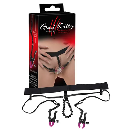 Зажимы на половые губы с промежностными бусинками Spreader-Slip ORION, длина 68.00см