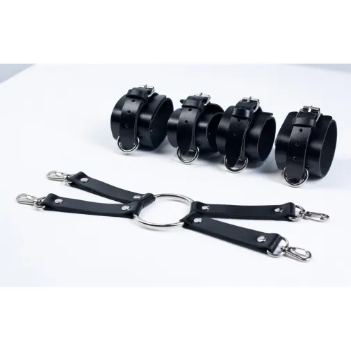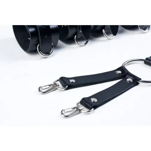 Широкий набор для фиксации с четверным креплением, кольцом в центре и карабинами на концах.
