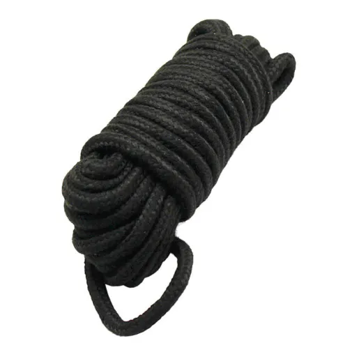 Мягкая и шелковистая верёвка черного цвета, она наиболее комфортна для эстетического бондажа и декоративной вязки. Прочная, при этом обладает мягкой поверхностью, не травмирует кожу, не обжигает при протягивании. Прекрасно держит обвязку. Размеры: Длина — 10 м; Диаметр — 0,8 см;