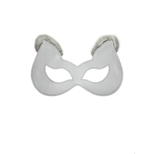 Игривая маска белого цвета, выполненная из натуральной кожи. Ушки маски украшены нежным белым эко-мехом, что придаёт ей изящности. Фиксируется сзади с помощью металлической пряжки, позволяя выбрать комфортный обхват головы. Форма макси эффектно подчеркивает глаза и создаёт необычный образ.