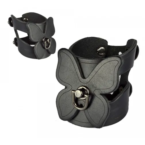 Браслет Бабочка изготовлен из толстой натуральной кожи черного цвета. Браслет застегивается на кобурные кнопки.