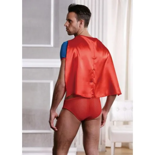Костюм супермена из 2х предметов: футболка с рукавами и коротким плащом, сетчатые трусы-боксеры. Упаковка: полноцветная коробка с еврослотом (высота: 27,75 см, ширина: 17,7 см, толщина: 2,5 см, высота еврослота: 3 см)