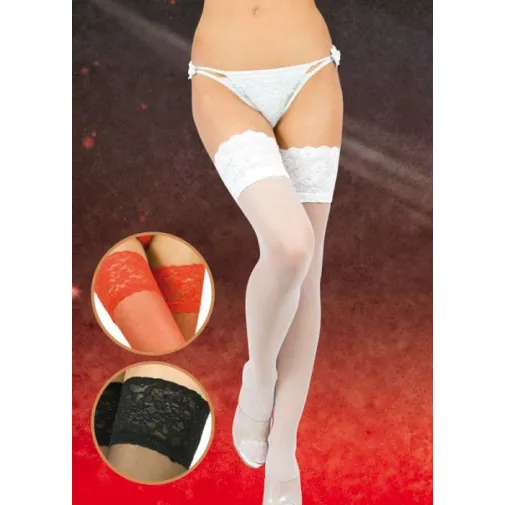 Чулки с широкой кружевной резинкой (с силик. полосками) (M (44-46), Белый)