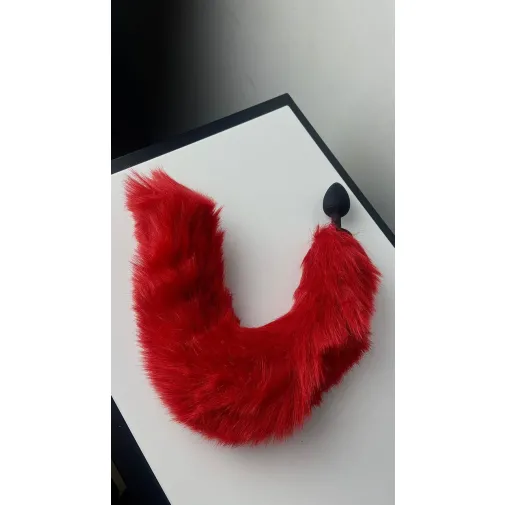 Анальная пробка силиконовая с искуственным хвостом красного цвета