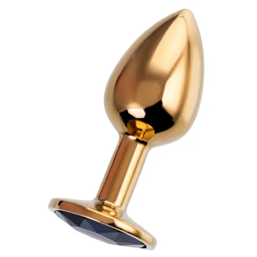 Анальный страз Штучки-дрючки, металл, золотистый, с кристаллом цвета турмалин, 7 см, Ø 2,8 см