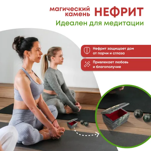 Набор из 2 шариков из натурального Нефрита серии "Самоцветы Сибири"в ларце из натурального камня