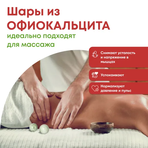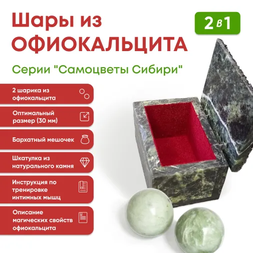 Набор из 2 х шариков из натурального камня Офиокальцита серии "Самоцветы сибири"в ларце из нат камня