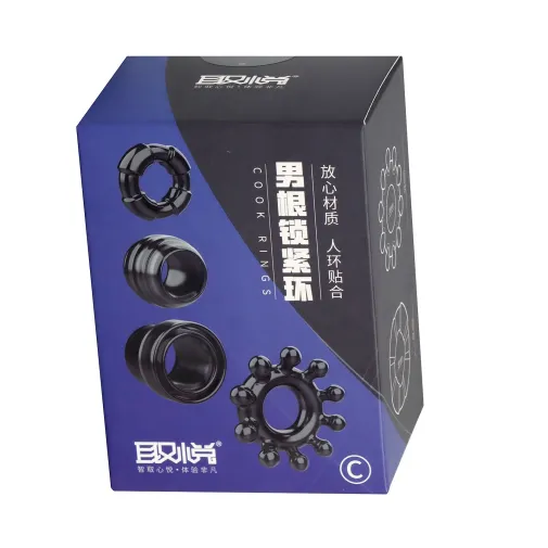 Кольцо эрекционное Box C, набор 4 шт., гелевый силикон, черный