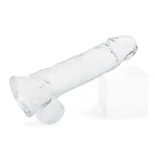 Прозрачный фаллоимитатор на присоске, изготовлен из крепкого и эластичного материала.