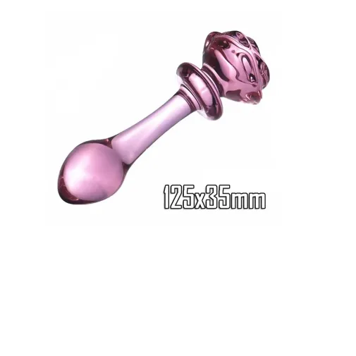 Стеклянный фаллоимитатор в форме розовой розы 125*35 мм