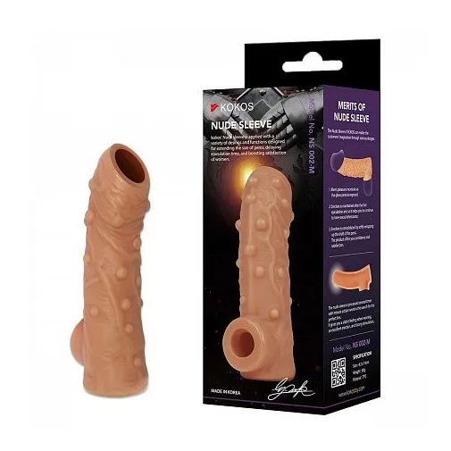 Телесная насадка с пупырышками и открытой головкой NS-002 L - 14 см.