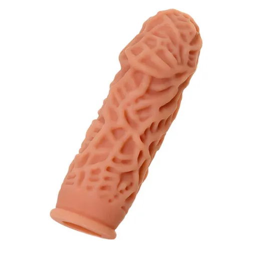 Превосходная игрушка для мужчин, желающих подарить партнерше новые интимные переживания. Когда насадка одета на пенис, у женщины возникает стойкое ощущение секса с незнакомцем – член чувствуется совершенно по-новому. Это позволит освежить интимную жизнь пары, привнеся в нее свежие впечатления. Облик насадки практически идеально копирует внешний вид эрегированного фаллоса, головка хорошо выделена и обладает четко очерченным краем, а ствол увит рельефными «змейками», имитирующими набухшие вены. Игрушку можно использовать для того, чтобы увеличить объем пениса, что крайне актуально для мужчин с малым и средним размером члена. Гаджет изготовлен из высококачественной термопластичной резины и весьма приятен наощупь. Общая длина в нерастянутом состоянии 12,7 см.