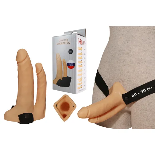 Крепится такой страпон на трусиках, ремешки на плечи как подтяжки. Используются и мужчинами, и женщинами. насадка полая. В ней есть отверстие для мужского члена, в случае того, если эрекция слаба или девушка хочет продолжения, когда партнер уже кончил.