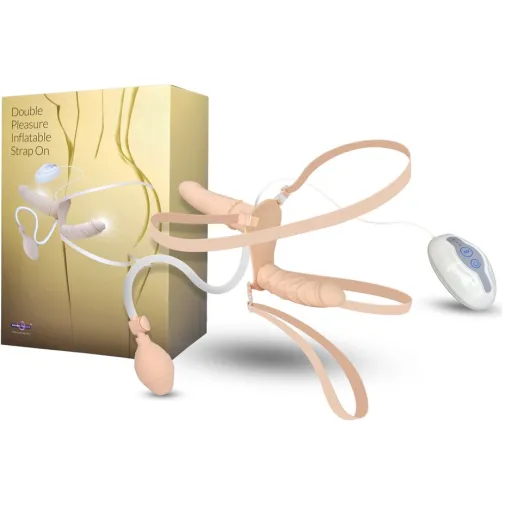 Страпон на ремешках с вибрацией, наддувом и вагинальным стимулятором