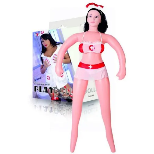 Кукла надувная в костюме медсестры. Брюнетка. Вставка вагина – анус. 2 отверстия.