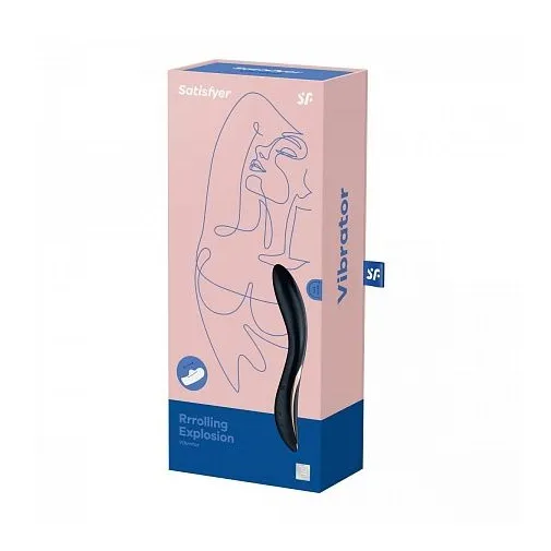 Satisfyer Rrrolling Explosion (Сатисфаер) – это вибромассажер необычной формы, сочетает в себе мощную вибрацию и дополнительную стимуляцию зоны G подвижным шариком. Стимулирующий шарик для точки G на кончике игрушки, который двигается вверх и вниз, имеет 7 скоростей движения. У массажера 12 режимов вибрации. Анатомический корпус покрыт медицинским силиконом. Водонепроницаемость IPX7 позволит развлекаться с массажером в ванной (до 30 минут не глубже 1 метра). Рабочая длина - 12 см.