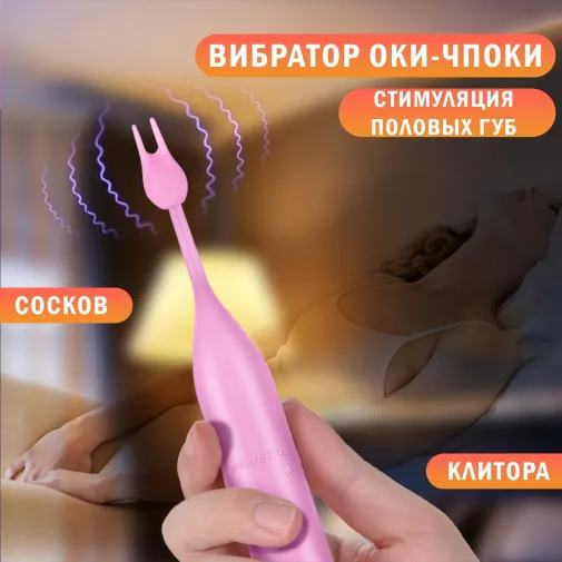 Вибратор Оки-Чпоки, для клитора и сосков, 2 сменные насадки, розовый