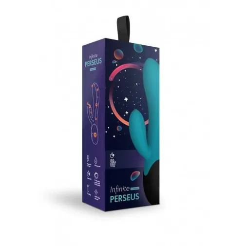 Ствол вибратора Perseus окрашен в восхитительный бирюзовый цвет, очень приятного глазу оттенка. Он великолепно сочетается с темным цветом рукоятки, придавая игрушке изысканные черты. Аксессуар имеет слегка изогнутый ствол с крупной головкой, внутри которой скрывается мощный виброэлемент. Он равномерно массирует вагину при фрикциях и удобен для локального массажа точки G. Гаджет способен нагреваться, дополняя вибростимуляцию при помощи повышенной температуры, что еще больше усиливает возбуждение. Сбоку установлен округлый стимулятор клитора с независимым моторчиком, воздействующий на главную эрогенную зону. Пользователь может выбирать любой из 11 предустановленных режимов работы устройства, включать и отключать функцию нагрева. Девайс полностью водонепроницаем, поэтому отлично подойдет для интимных игр в душе или ванной. Для питания используется встроенный аккумулятор, заряжаемый при помощи магнитной зарядки. В комплект входит инструкция и мешочек для хранения. Длина гаджета 20,8 см., диаметр 4,4 см., глубина