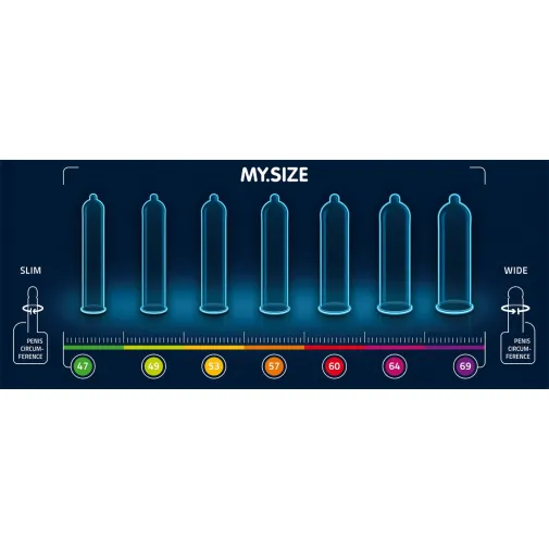 Ширина: 69 mm Длина: 223 mm Материал: Натуральный каучуковый латекс Форма: Циллиндрическая Толщина стенки: 0.07 mm Уникальные презервативы MY.SIZE размерного ряда, разработаны при поддержке различных международных институтов, с учетом анатомических особенностей человеческого тела. В ходе опроса мужчин проживающих в различных странах было выявлено, окружность полового члена мужчины непропорциональна длине.Например, обладатель 47 размера имеет почти такую же длину, как и обладатель 69 размера. Измеряется не длина, а окружность полового члена, после чего присваивается размер. Что примечательно, размер не указывает на длину, а лишь на анатомическую особенность строения полового членаИменно поэтому презервативы MY.SIZE идеальны для мужчин любого телосложения. Сделав замер всего один раз, мужчина становится обладателем своего размера MY.SIZE на все время.