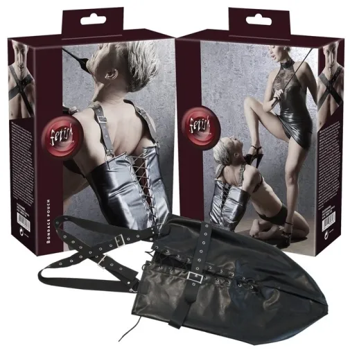 Этот набор идеально подойдёт для исполнения самых смелых Ваших фантазий! Это бандаж для обездвиживания рук с завязкой и упряжью и регулируемыми ремнями, скрещивающимися на груди. Изготовлен в стильном кожаном дизайне.