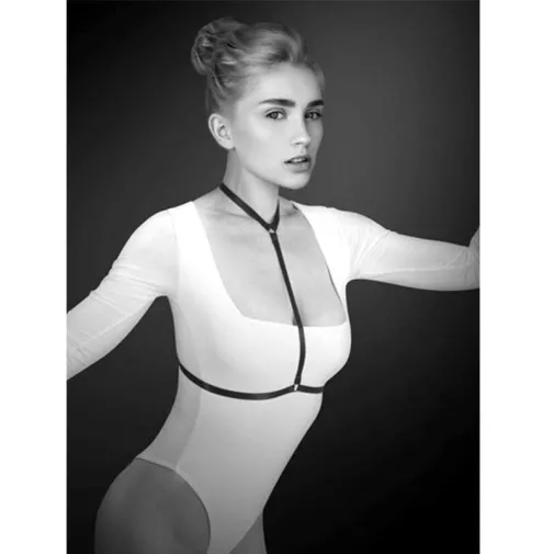 Изысканная простота! Женская упряжь-фиксация Bijoux Pour Toi Pamela имеет очень простую конструкцию, но при этом служит великолепным способом акцентировать внимание на природных женских формах. Бюст дамы становится столь соблазнительным, что от него трудно отвести взгляд. Удивительно, но этот эффект создают всего несколько тонких ленточек. Широкая лента подхватывает грудь женщины снизу и продолжается за спину. От нее отходит бретелька, проходящая между грудей и поднимающаяся к шее дамы. Здесь расположен тонкий ошейник, хорошо заметный на фоне тела. Упряжь может выступить в роли изящного аксессуара, дополняющего верхнюю одежду, либо стать атрибутом эротического костюма. Также, ее можно одеть прямо на обнаженное тело. Материал – полиэстер. Размер универсальный.