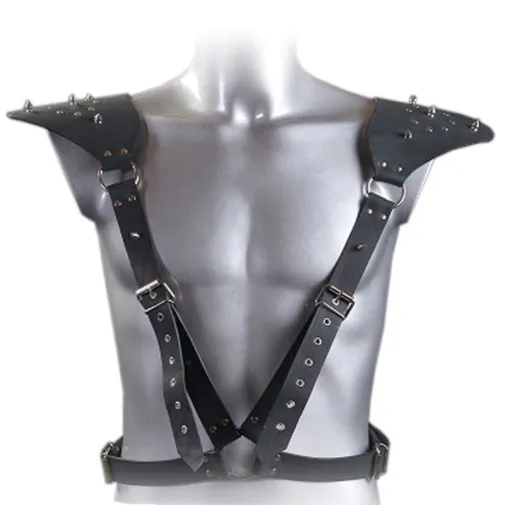 Сбруя из натуральной кожи ручной работы. Кожаные ремни плотно охватывают торс, в выгодном свете представляя вашу мускулатуру. Необычные эполеты, декорированные металлическими шипами, являются особой изюминкой данной модели. Это изделие позволит вам разнообразить свою сексуальную жизнь и внести в неё новые краски и образы.