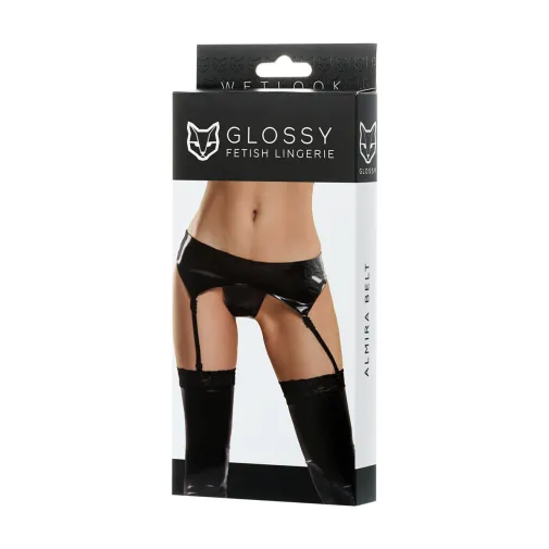 КОМПЛЕКТ GLOSSY ПОЯС ДЛЯ ЧУЛОК И ТРУСИКИ ЧЕРНЫЙ (S)