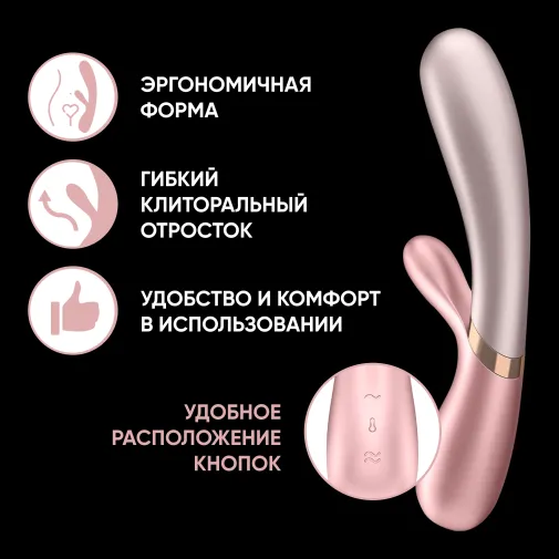 Satisfyer Hot Lover (Сатисфаер) - это кроличий вибратор, в котором есть что-то особенное! В то время как стержень с его эргономично изогнутым концом соблазняет вашу точку G, небольшой стимулятор позаботится об интенсивной стимуляции клитора. Двумя мощными двигателями можно управлять независимо друг от друга с помощью панели управления вибратора или приложения Satisfyer Connect. Вы также можете использовать функцию подогрева устройства для особо жарких моментов: стержень Satisfyer Hot Lover можно нагреть до 39 градусов по Цельсию / 104 градусов по Фаренгейту, что не только обеспечивает большее чувство удовольствия и повышенную способность к оргазму, но и также реалистичный, телесный опыт. Функцию подогрева также можно активировать независимо от контроля вибрации.