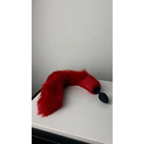 Анальная пробка силиконовая с искуственным хвостом красного цвета