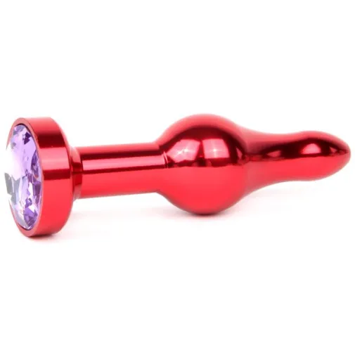 Длинная и тонкая металлическая анальная пробка со стразом. Цвет пробки - красный. Цвет страза - светло-фиолетовый. Материал: Металл.