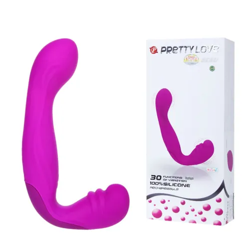 Уникальный массажер для одновременной стимуляции влагалища, клитора ануса, а так же он может использоваться как безремневой страпон. Использование как страпон: Меньшим концом вибратор вставляется вагинально, а большая часть служит страпоном. Использование как стимулятор клитора и точки G; Большая часть вставляется вагинально, а меньшая попадет на клитор. Использование как анально клиторальный стимулятор: Большая часть вставляется в анальный проход, меньшая попадает на промежностную область и клитор. Таким образом, происходит стимуляция всех самых чувствительных эрогенных женских зон. Вибромассажер имеет два мотора, с 30 функциями вибрации, не имеет швов и стыков, которые могли бы помешать во время использования. Быстрая зарядка всего 60 минут и время беспрерывной работы 90 мин. делают его очень удобным в путешествиях. Футуристическая форма не привлечет внимание, и вам не придется отвечать на вопрос о том, что это такое вы там везете! Влагонепронецаем, перезаряжается от аккумулятора и USB. Сделан из бархатисто