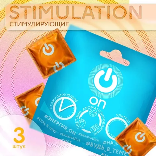 Презервативы ON "Stimulation" рельефные с точками -3 штуки