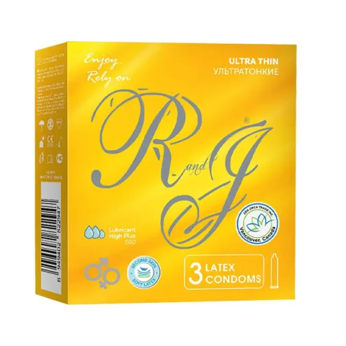 Презервативы из натурального латекса R and J ULTRA THIN натуральные чувства, 10 шт в упаковке. Классические. Очень увлажненные. Обильная смазка +. Диаметр: 52+-2 mm; Длина: 180+-10 mm; Толщина: 0.05+-0.01 mm. При производстве презервативов "R and J" используется технология "Thin Technology". Используется более мягкий латекс. Это позволяет получать чувственные ощущения во время секса. При одевании нужно аккуратно придерживать уплотняющее кольцо, мягко, без спешки, аккуратненько надеть презерватив. Мы уверены, что максимально удовлетворяем требования клиентов.Качество - наш приоритет. Не тратим Ваши деньги на ТВ и корпоративы. Отсюда - Низкая Цена.Произведено по заказу ZEN ORCA TRADE INC, CANADA.Способ применения: Вскройте фольгированную упаковку и достаньте презерватив. Используйте по назначению в соответствии с вложенной в упаковку инструкцией.