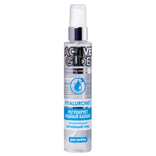 Нежный гель-любрикант на водной основе Active Glide с гиалуроновой кислотой интенсивно и длительно увлажняет и смягчает интимные зоны, устраняет сухость влагалища, восполняет недостаток женской смазки, дарит приятное продолжительное скольжение во время близости, снимает раздражения, препятствует появлению микротравм. Входящая в состав любриканта гиалуроновая кислота нормализует водный баланс клеток, способствует регенерации кожи и слизистых, обеспечивает эластичность тканей половых органов. снижает чувствительность кожи, усиливает её защитные функции. Гель-любрикант Active Glide с гиалуроновой кислотой обеспечивает бережный уход за интимными зонами женщин и мужчин. Не имеет цвета и запаха, легко смывается водой.